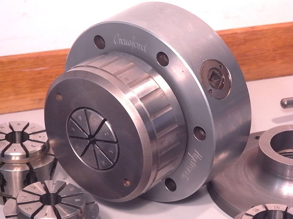 Verkauft: Eine gebrauchte Crawford manuale hydraulic Spannzangen Futter mit wide range Multibore Spannzangen Satz ø9.5-38mm
