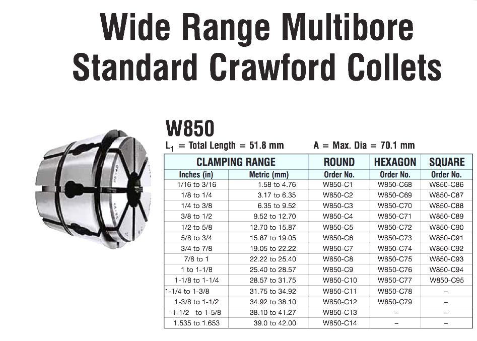 - wide range multibore collets plain bore