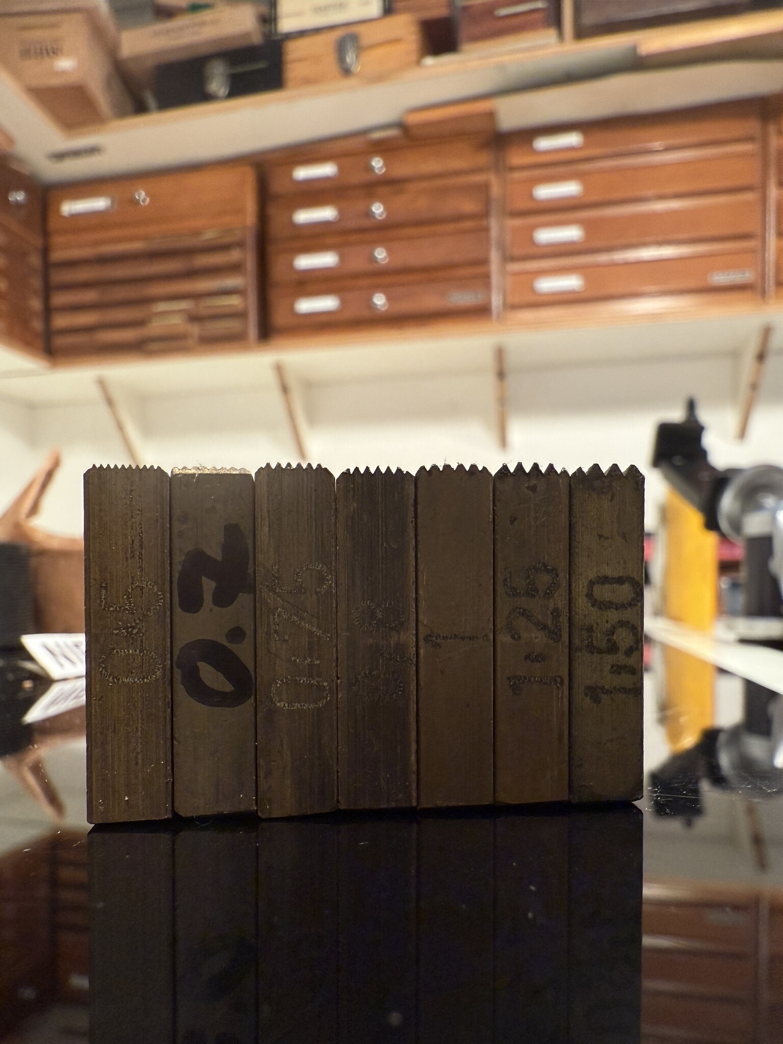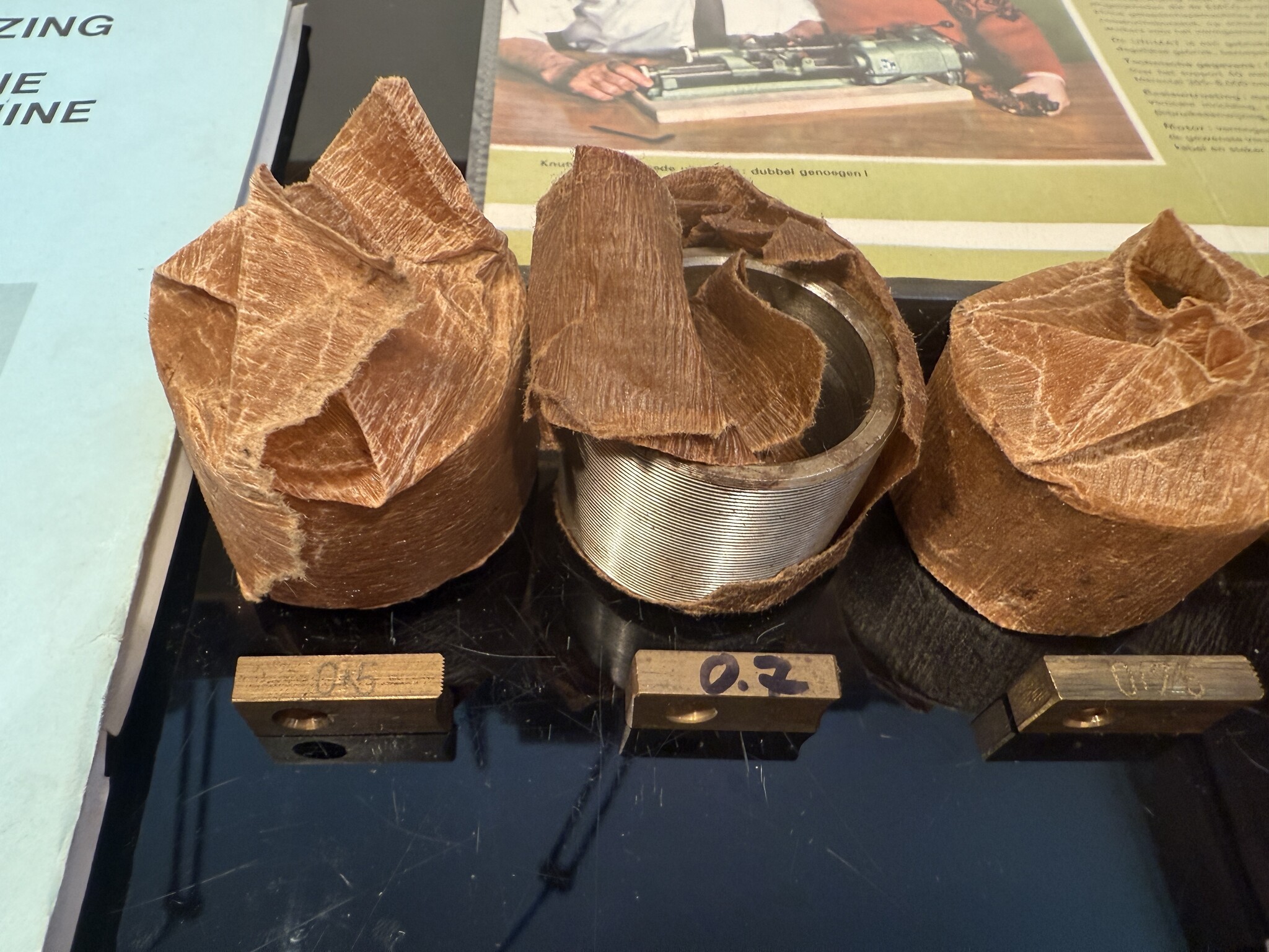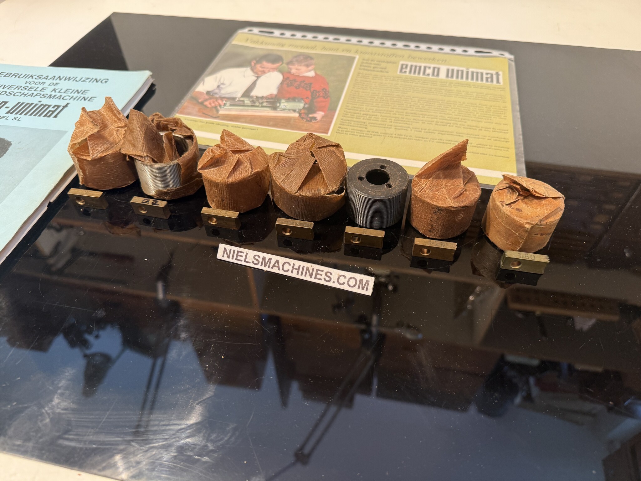 Eine gebrauchte Emco Unimat SL or DB Drehbank Gewindeschneideeinrichtung Patronen mit Backen Metrische Satz