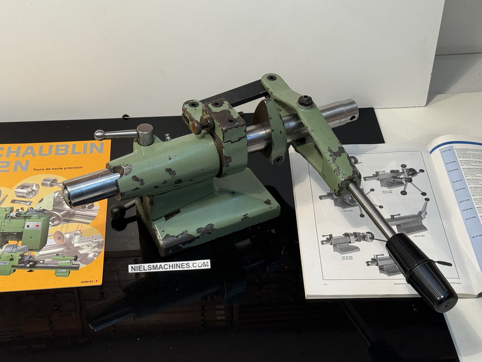 Eine gebrauchte Schaublin 102 Verstellbarer Bohr-Reitstock mit Hebel W20 mit einstellbarem Anslag