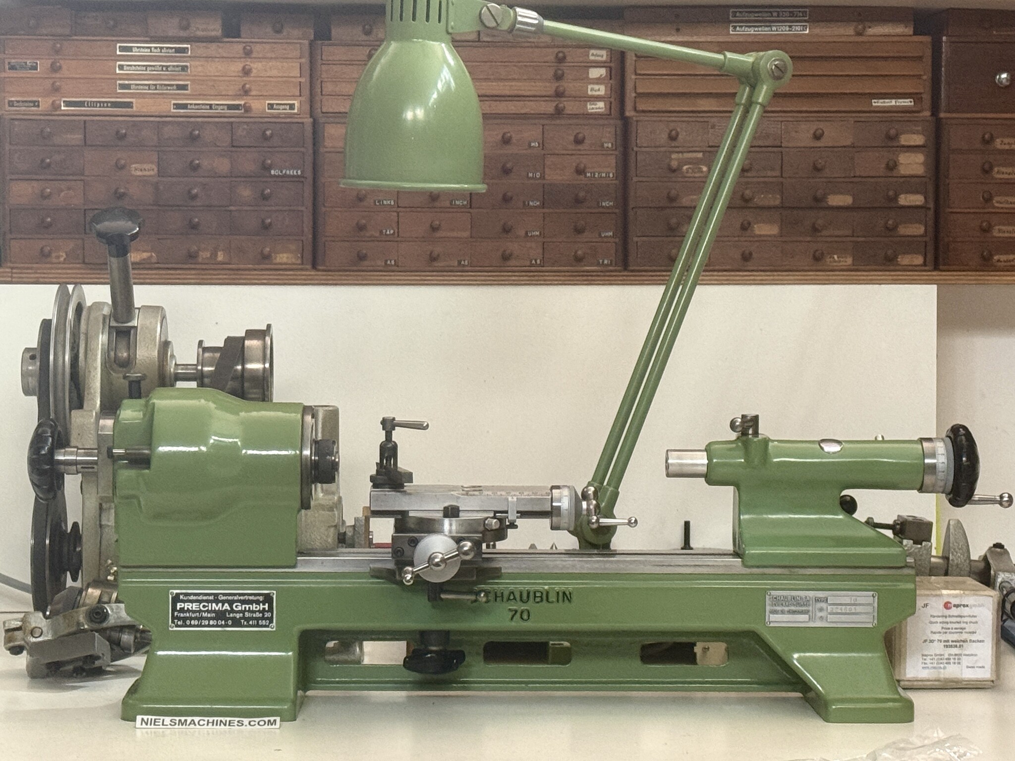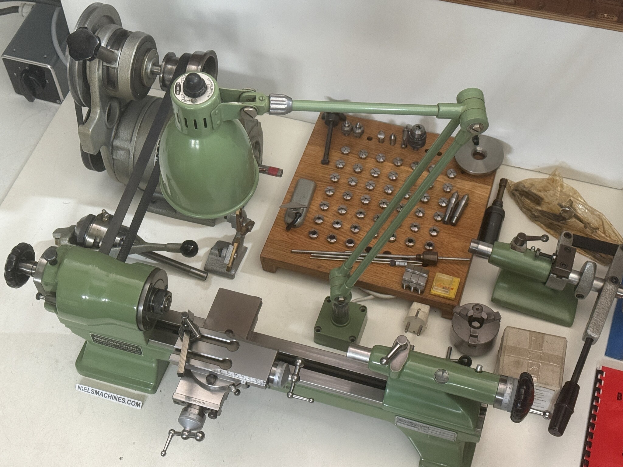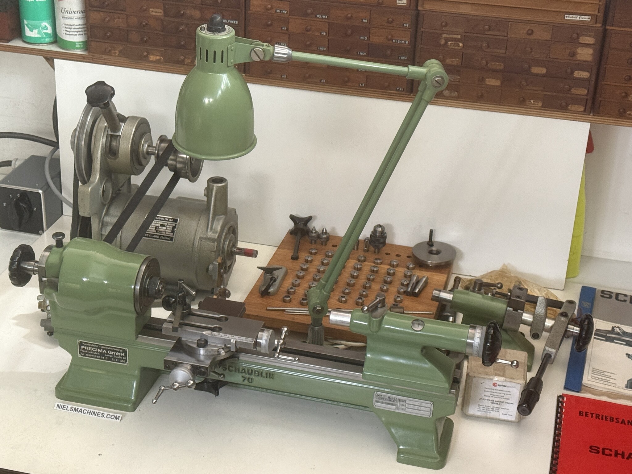 Eine gebrauchte Schaublin 70 Hochpräzisionsdrehmaschine mit Zubehör