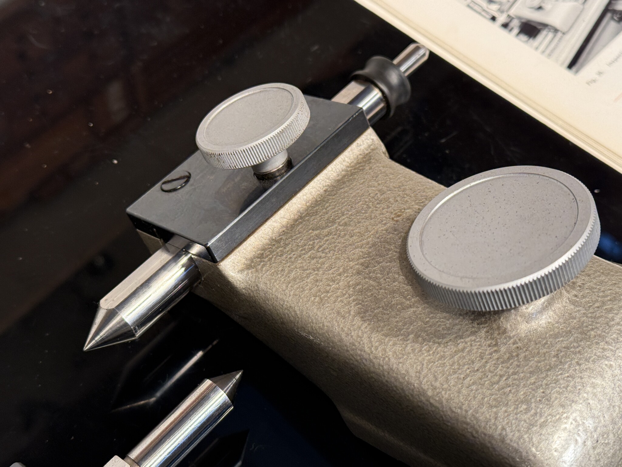 Eine gebrauchte SIP Mu-214B Messmaschine Zubehör: Körnerspitzen, Reitstock