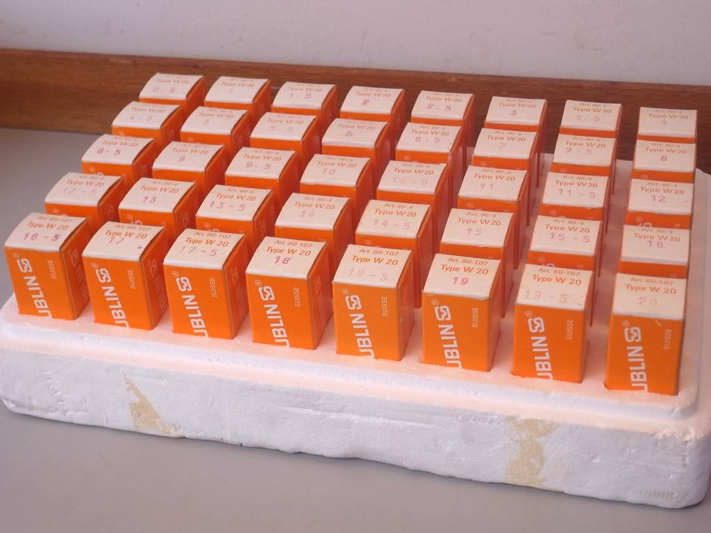 Sold: A complete set of unused Schaublin W20 collets 40 Pieces NOS (New Old Stock)